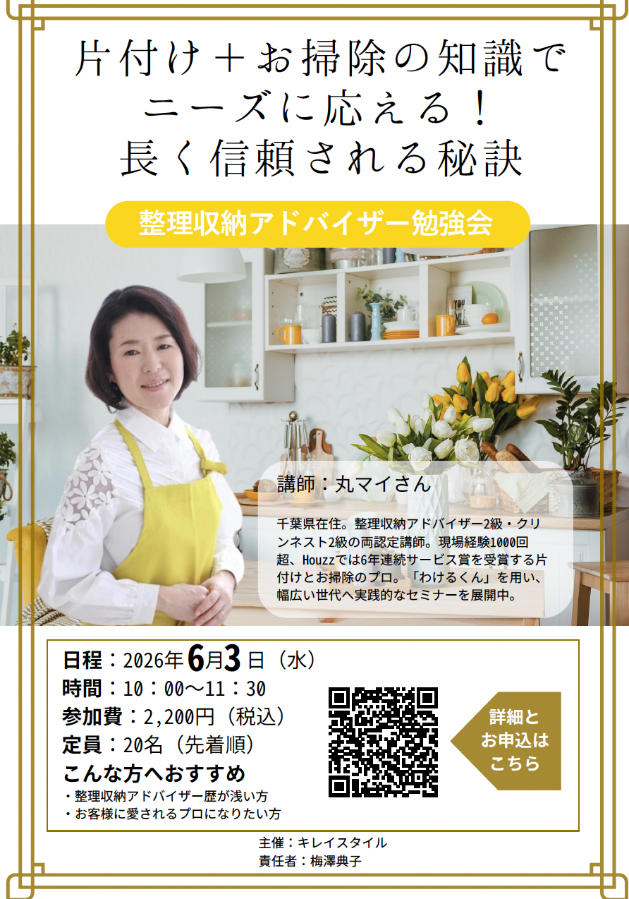 【6/3開催】片付け+お掃除の知識でニーズに応える!長く信頼される秘訣
